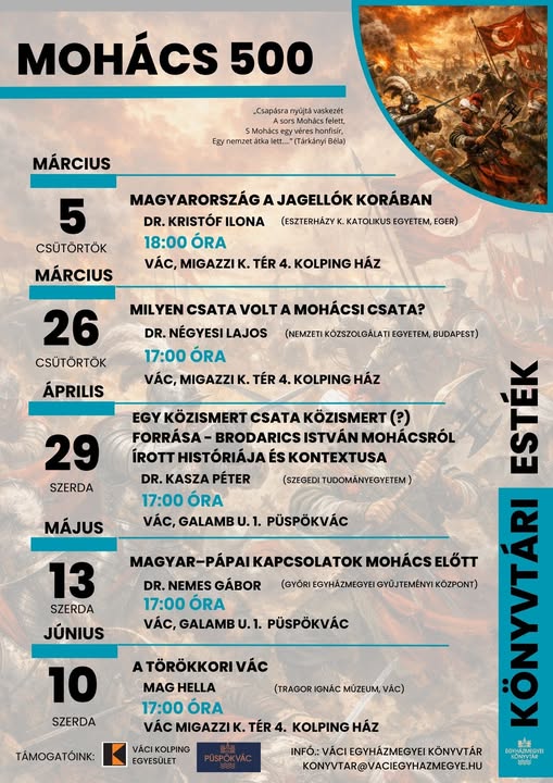 Vác Város Idősügyi Tanácsa szervezésében Idősek Akadémiája Vác zenei életének története Inotay Gergely előadása, amely Vác zenei életének gazdag múltját és jelenét mutatja be közérthető, szórakoztató formában. Különleges érdekességeken és […]