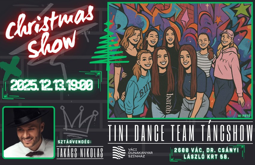 Előadják: Tini Dance Team Power csapata // Sztárvendég: Takács Nikolas (Jegyek online // Tourinform Irodákban // Előadás előtt 1 órával a színházban)