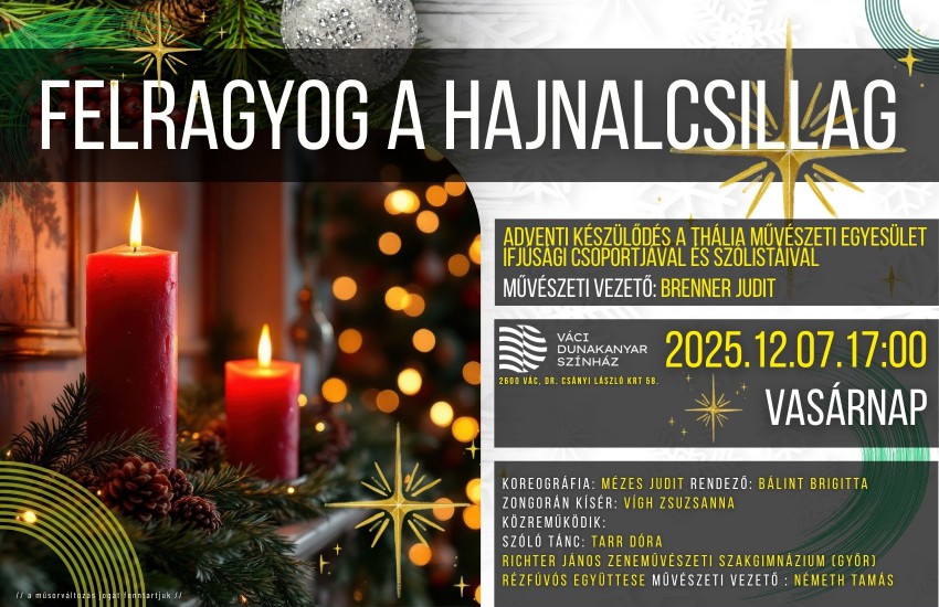 Adventi készülődés a Thália Művészeti Egyesület Ifjúsági csoportjával és szólistáival. (vacidunakanyarszinhaz.jegy.hu-s előadás // jegyek online // Tourinform Irodákban // Előadás előtt 1 órával a színházban)